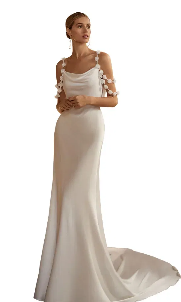 4. Romantische Spaghettiträger mit funkelnden 3D-Blüten zieren dieses Slipdress von Rosa Clará Boheme.