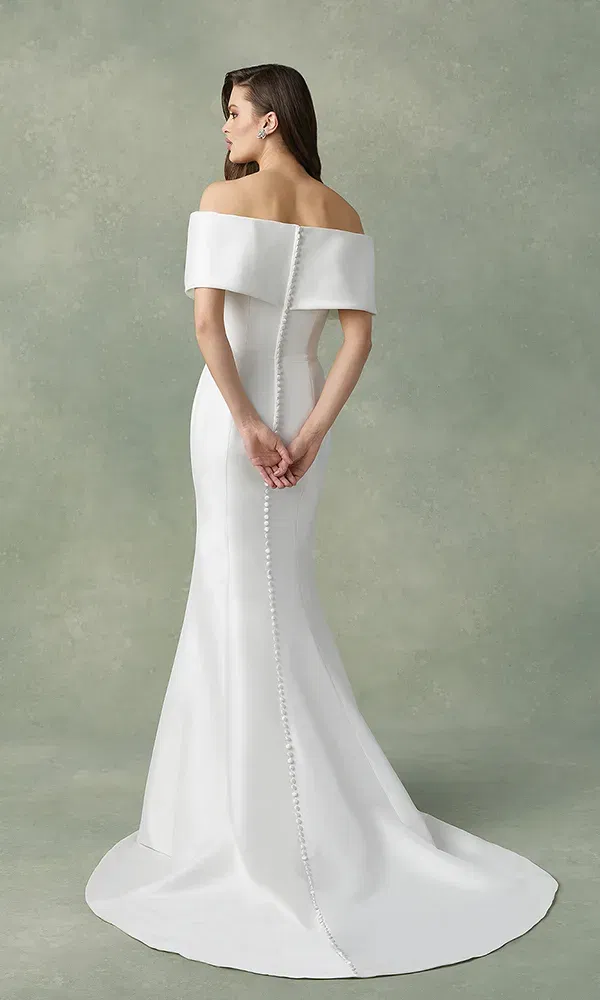 In der griechischen Mythologie ist die schöne Göttin Hera die Königin der griechischen Götter, die Göttin der Göttinnen und Frauen. Wir sehen Hera in Style Fiona, einem knackigen Mikado-Brautkleid mit der Anmut einer Königin. Dieses Kleid ist perfekt für die anspruchsvolle Braut, die sich von ihrer stilvollen Seite zeigen möchte. Die klare, ausgestellte Silhouette ist königlich und minimalistisch, aber der wunderschöne schulterfreie Ausschnitt stiehlt ihr die Show.