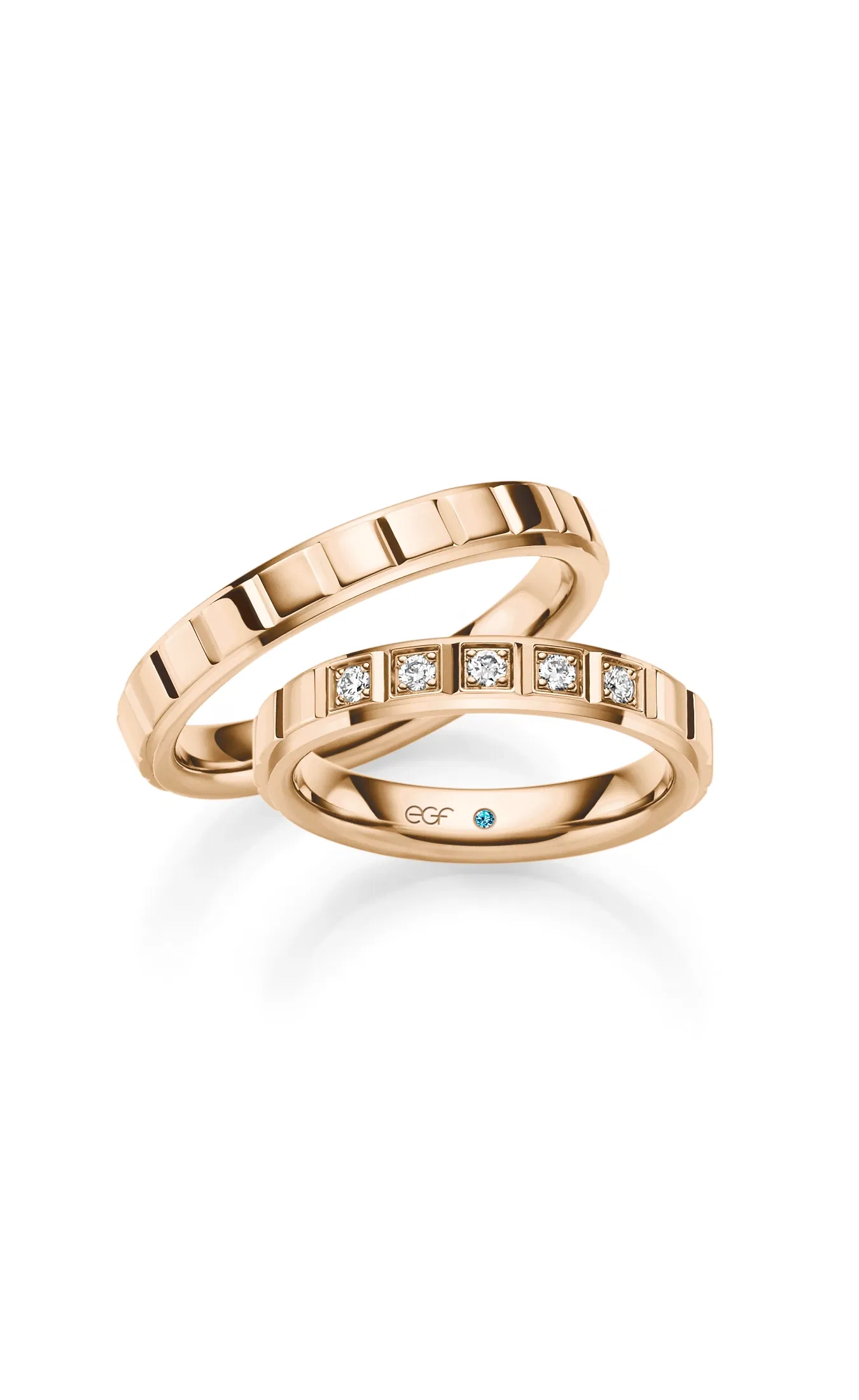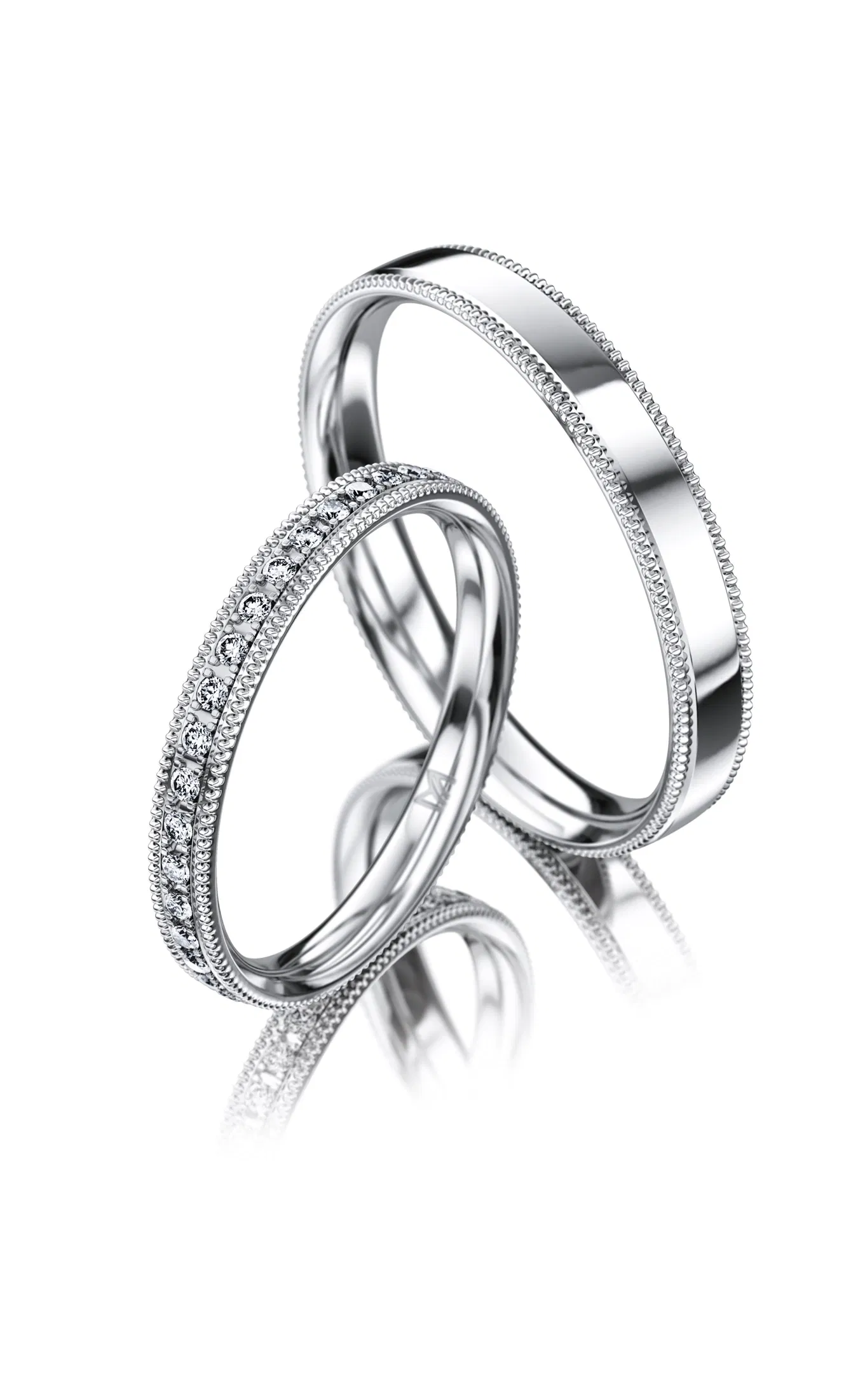 Bild rechts: Seitliche Perlierung akzentuiert die beiden Eheringe von MEISTER.