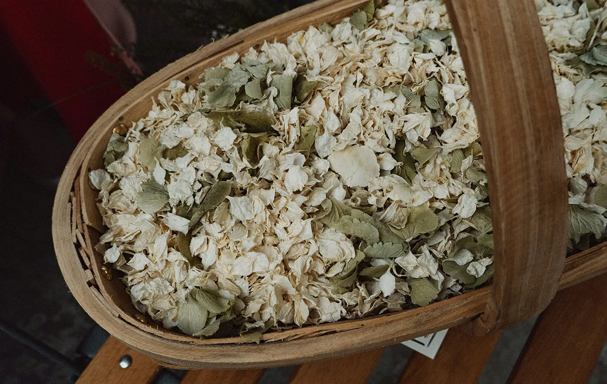 Eine besonders beliebte und nachhaltige Alternative zum Reiswerfen sind getrocknete Blüten oder Blütenblätter. Sie bringen Farbe ins Spiel, sind biologisch abbaubar und wirken auf Fotos besonders romantisch. Fragt euren Floristen oder Floristin, welche Blüten sich am besten eignen oder stimmt die Blütenfarben auf euren Brautstrauß sowie die Blumenkinder ab.