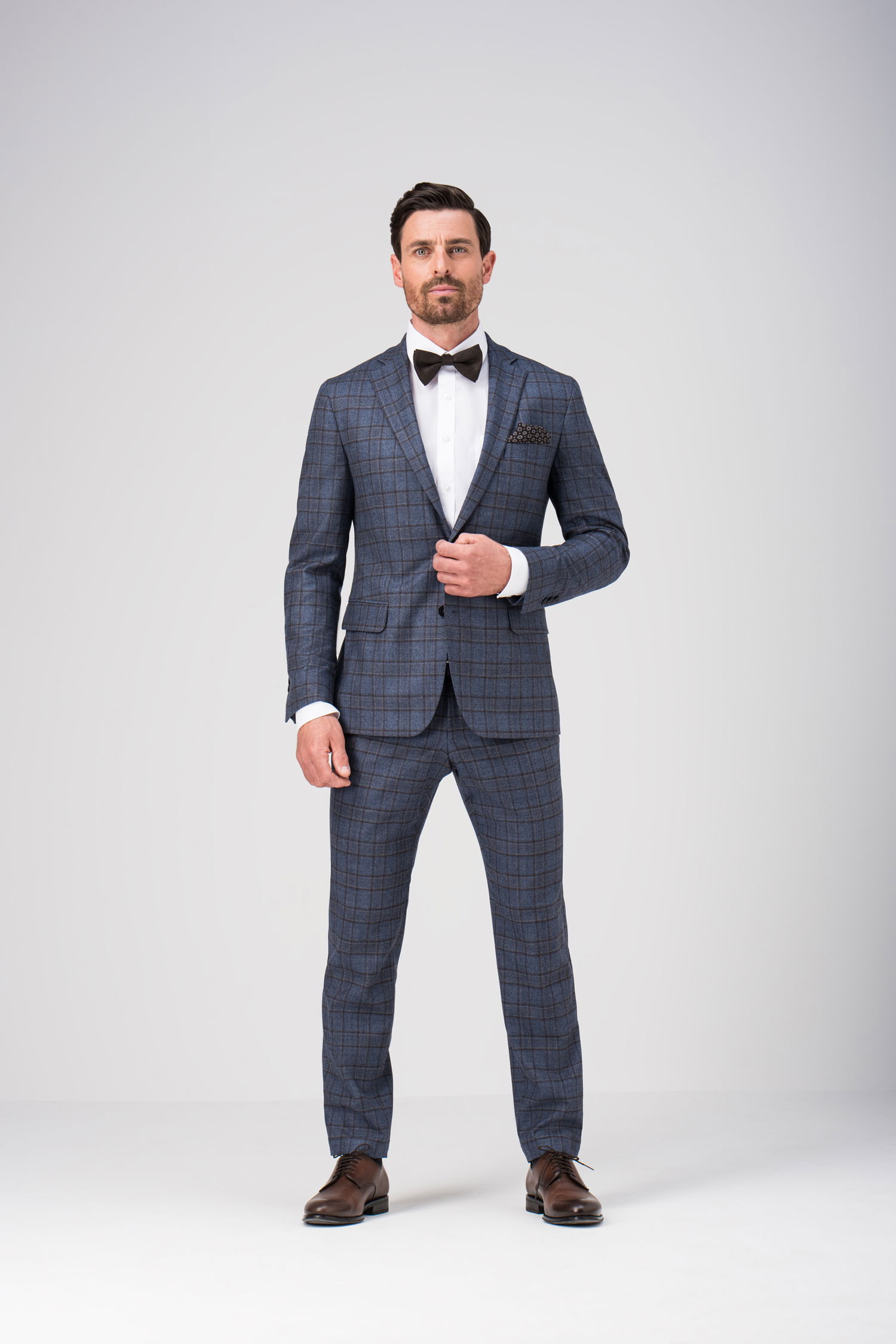 Anzüge mit Karos oder dezenten Streifen wirken besonders stilvoll. Kombiniert mit schlichten Accessoires entsteht ein moderner und harmonischer Look für den großen Tag.