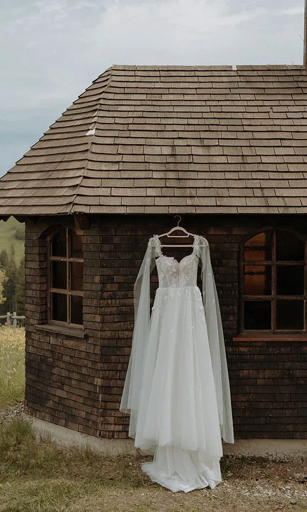 Clara-Luise fand ihr Traumkleid im kleinen, charmanten Brautmodengeschäft Märchenweiss in Schongau. Als sie das Kleid anprobierte, war sofort klar: „Das ist es“, flüsterte sie der Verkäuferin zu.