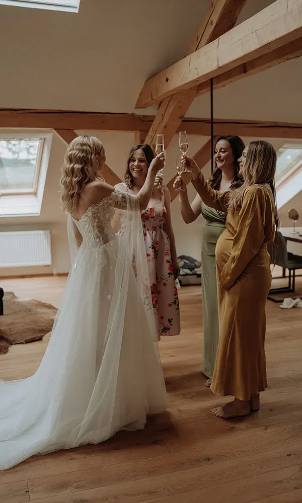Clara-Luise und Tobias feierten nicht nur ihren Hochzeitstag, sondern gleich ein ganzes Wochenende voller schöner Momente. Von der gemütlichen Brauereiführung mit Brotzeit am Freitag über die persönliche freie Trauung am Samstag bis hin zur ausgelassenen Party am Abend – die Stimmung war durchweg herzlich und unbeschwert. Begleitet von Live-Musik, Tanz, köstlichem Kuchen und gemeinsamen Momenten blieb kaum ein Wunsch offen. Nach einem entspannten Frühstück am Sonntag hieß es schließlich Abschied nehmen – mit vielen unvergesslichen Erinnerungen im Gepäck.