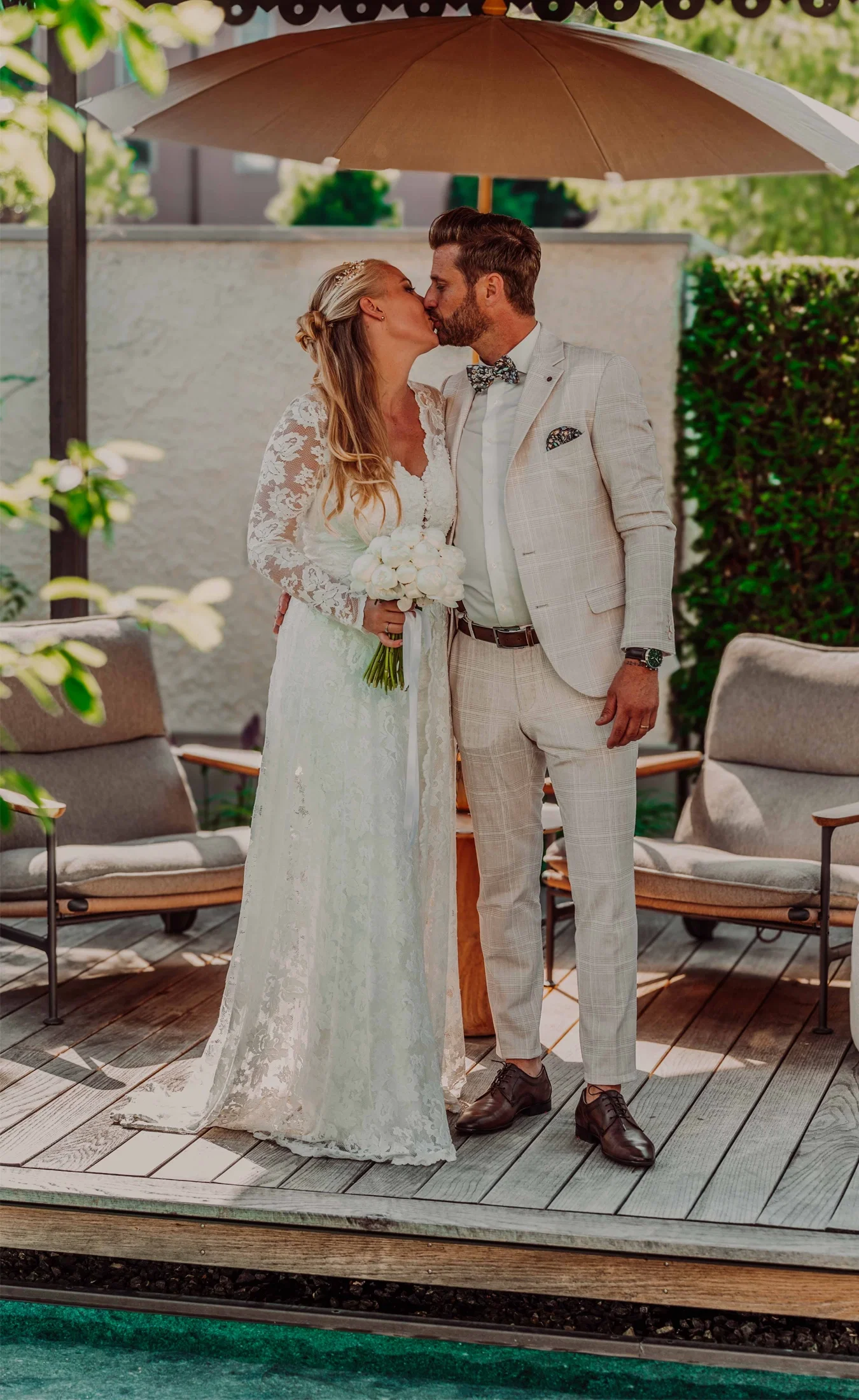 Bei der Wahl ihrer Dienstleister setzten die beiden auf Nähe und Bauchgefühl. Die fotografische Begleitung übernahm ein guter Freund des Paares – ein grosser Vorteil, denn so entstanden besonders natürliche, entspannte Aufnahmen voller Emotionen. Auch bei der Auswahl des Caterings nahmen sie sich bewusst Zeit: Sie besuchten sie einen ganzen Tag lang verschiedene Restaurants in der Region, die in der engeren Auswahl standen, um Geschmack, Atmosphäre und Konzept direkt vor Ort zu erleben und die perfekte Entscheidung für ihre Feier zu treffen.