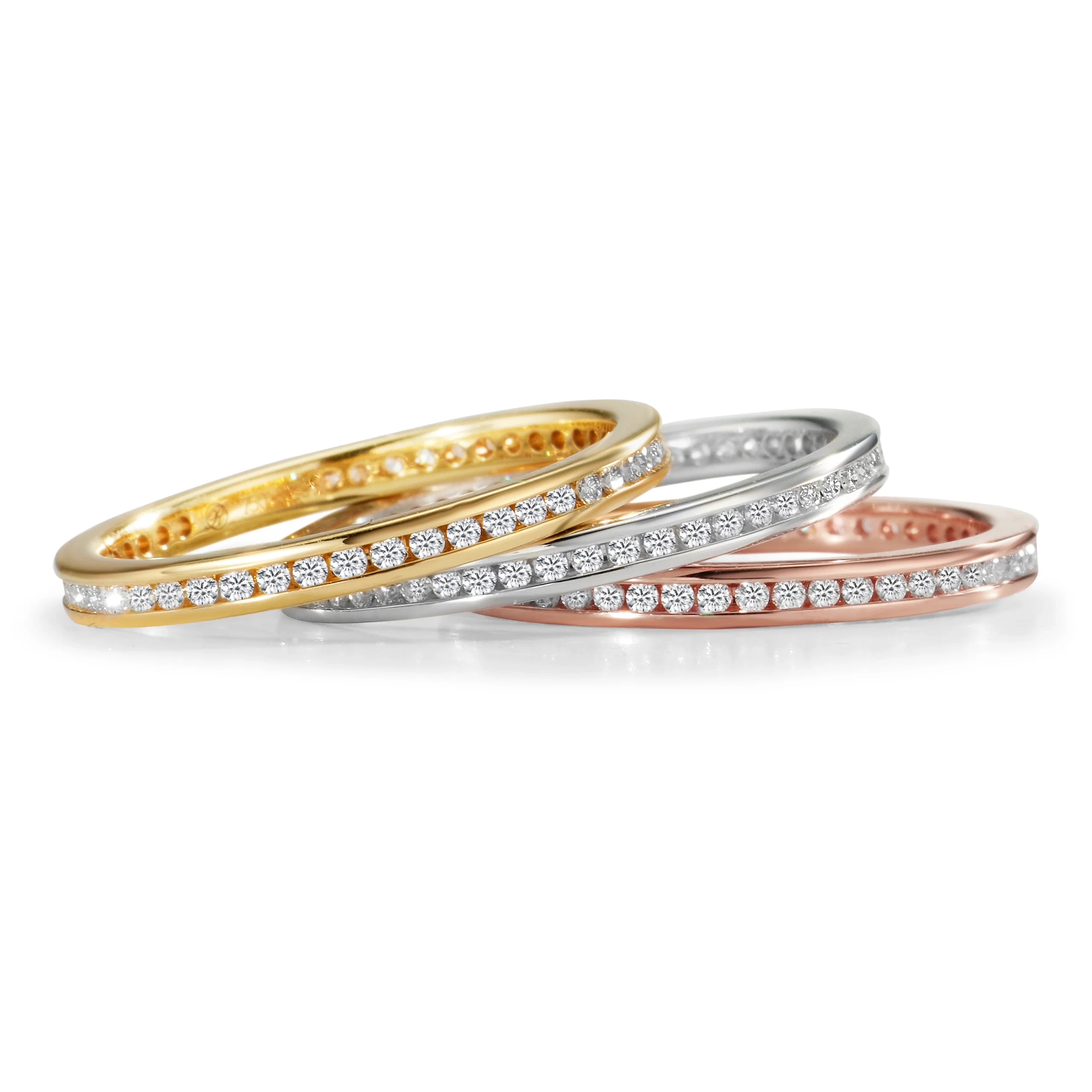 Diese Memory-Ringe aus 18 Karat Gold sind besetzt mit funkelnden Diamanten. Die extra filigrane Ringbreite von 2 mm eignet sich ideal als Aufsteckring für einen Ehering oder in Kombination mit einem Solitärring und kann auch alleine getragen werden.