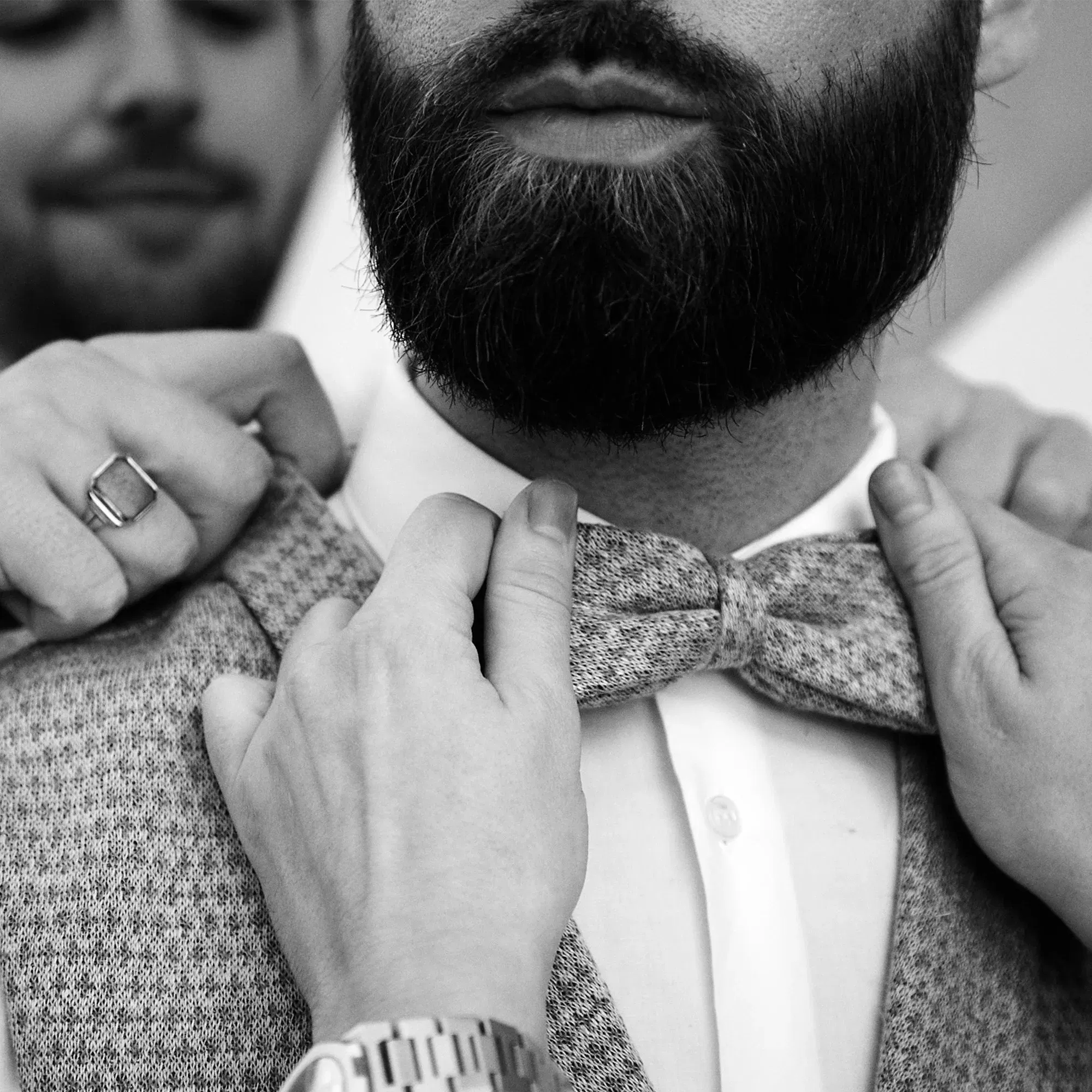 Hier kommt es ganz darauf an, welchen Hauttyp du hast: Bei trockener Haut verwendest du am besten einen Trockenrasierer – dieser verhindert eingewachsene Haare, die nicht nur schmerzhaft sind, sondern auch unvorteilhaft aussehen. Nach der Rasur solltest du mit deiner Haut schonend umgehen. Verwende am besten ein Aftershave oder eine pflegende, hautfreundliche Gesichtscreme. Wenn du einen Bart hast und diesen vor der Hochzeit nochmal ordentlich stutzen lassen möchtest: Bei einem Friseur oder in einem Barber Shop bist du in den richtigen Händen. Für weitere Ratschläge, schaue dir unsere Hautpflege-Tricks für den Bräutigam an!