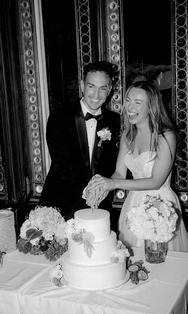 „Wir waren bei einem Goldschmied, weil wir etwas Individuelles wollten“, erzählt Evelyn. „Unsere Ringe sind aus Gelbgold und ganz schlicht – wir wollten etwas Zeitloses, das uns auch in 50 Jahren noch gefällt.“ Wichtig war den beiden außerdem, dass die Ringe alltagstauglich sind. „Ich möchte meinen Ehering immer tragen – egal ob beim Wandern oder beim Sport“, sagt Evelyn. „Beim Verlobungsring bin ich da deutlich vorsichtiger.“ Gemeinsam ließen sie die Ringe schmieden und gravieren. Innen stehen das Hochzeitsdatum und die Initialen des Paares. Zusätzlich bekam Evelyn als Morgengabe einen Vorsteckring von Rome & Juliette, rundum besetzt mit funkelnden Steinchen, der perfekt zu ihrem Ehering passt. Ein absolutes Highlight ist jedoch ihr Verlobungsring: Lukas konfigurierte ihn selbst – von der Fassung über die Auswahl des Steins bis hin zu den Krappen und dem Schliff des Diamanten. Ein Ring, der nicht nur wunderschön aussieht, sondern auch eine ganz persönliche und einzigartige Bedeutung für die beiden trägt.