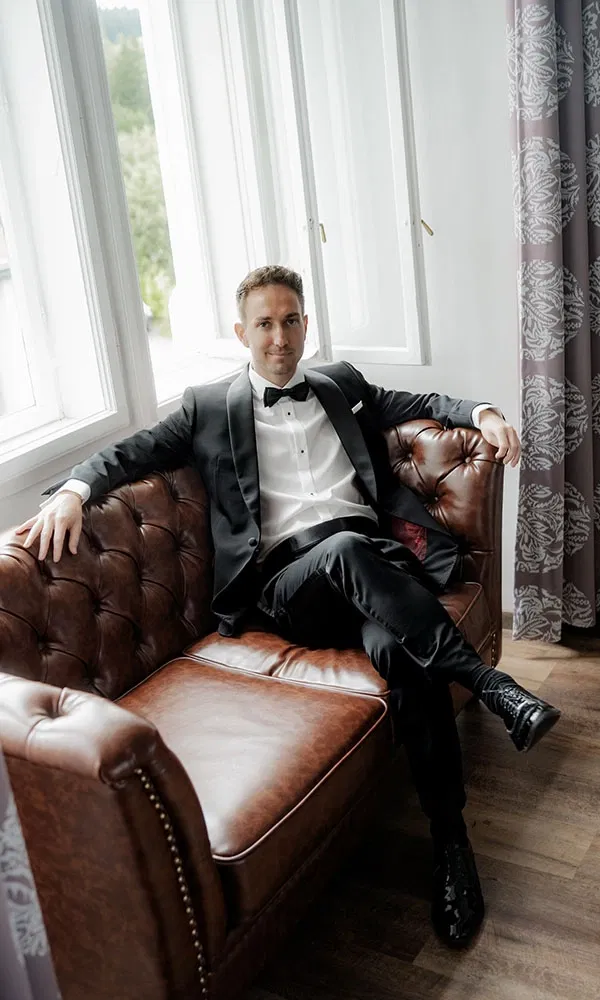 Beim Kauf war Evelyn zwar dabei – aber sehen durfte sie ihn nicht. „Wir waren damals beruflich in Hongkong, weil mein Mann und ich gemeinsam ein Unternehmen gegründet haben“, erzählt sie. Dort ließ Lukas sich seinen Anzug schneidern. „Ich war zwar mit im Geschäft, habe mich aber umgedreht, damit ich nichts davon sehe. Er meinte nur hinterher, dass er fündig geworden ist und der Smoking perfekt passt.“