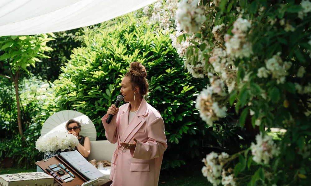 „Ich würde jedem Paar dazu raten, das mit dem Eheversprechen oder einer Danksagung an die Gäste trotz Nervosität zu probieren. Das ist so ein ,Once in a Lifetime’-Moment, der wirklich überhaupt nicht perfekt sein muss. Im Gegenteil! Gerade in den kleinen Versprechern, der zittrigen Stimme, einem kurzen ,Jetzt hab’ ich den Faden verloren’ steckt das größte Potenzial, um echte, nahbare, persönliche Momente zu schaffen. Und eigentlich gibt’s doch nichts Schöneres, als wenn einem vor lauter Liebe mal kurz die Worte fehlen, oder? Freie Trauungen sollten vor allem eines sein: echt!”