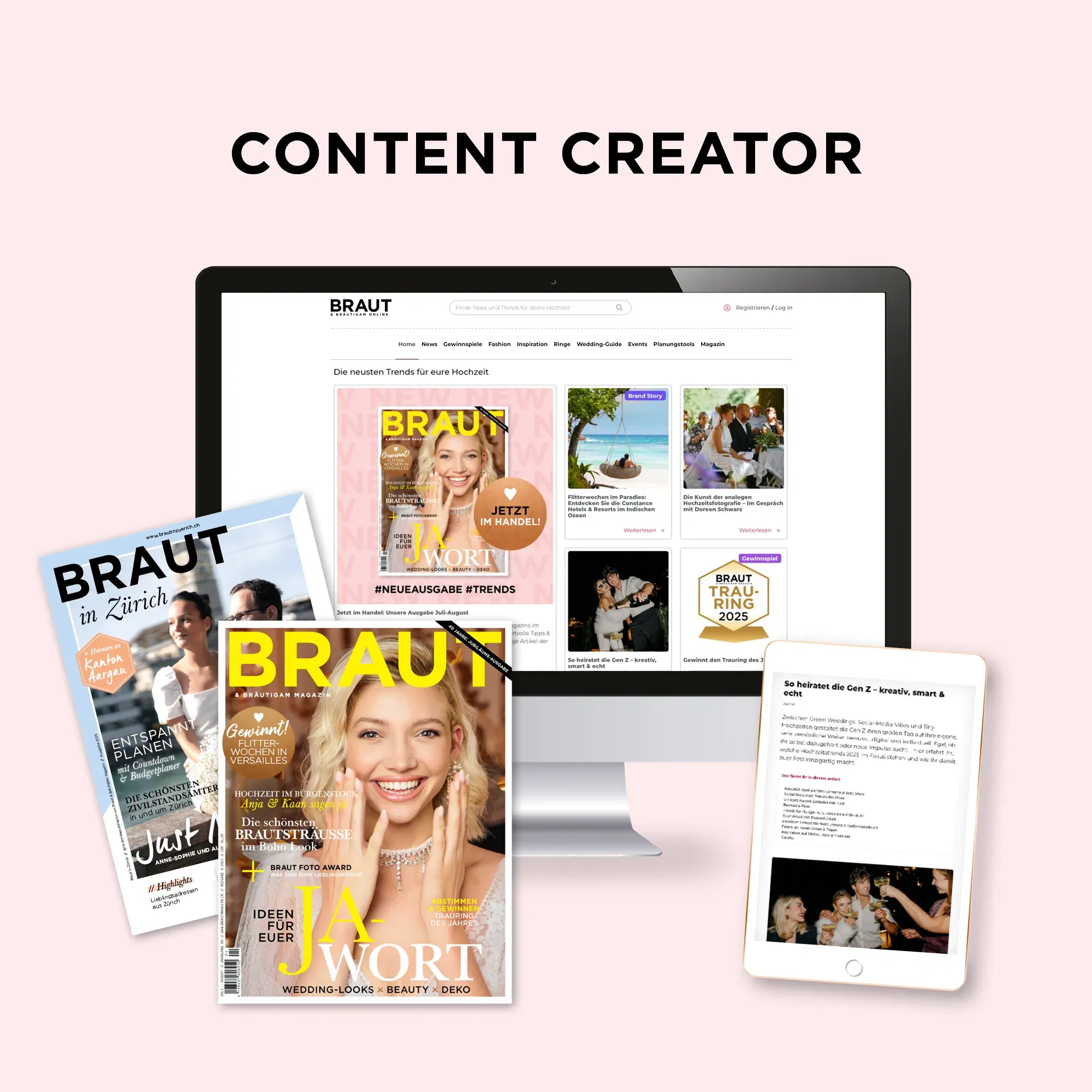 Braut Magazin ist das führende Hochzeitsmagazin in Schweiz. Als Teil von Brautmedia inspirieren und informieren wir jedes Jahr zehntausende heiratswillige Paare bei der Planung ihrer Traumhochzeit. Mit einer Kombination aus Print, Online und Social Media bieten wir eine umfassende Medienplattform, die Brautpaare von den ersten Ideen bis zum großen Tag begleitet. Zur Verstärkung unseres deutschen Teams suchen wir derzeit folgende KandidatInnen: